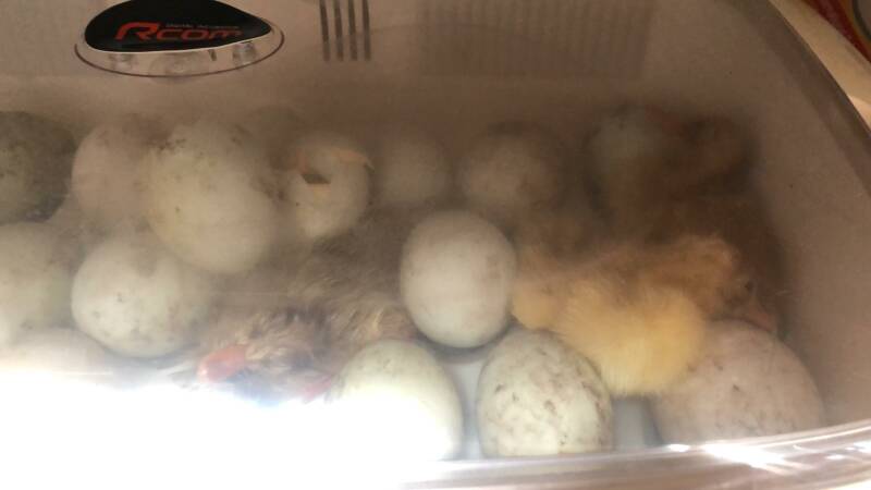 De eerste loopeendjes zijn uit het ei!!🐥Langzamerhand kruipen er steeds meer uit het ei. De eendjes liggen nog te slapen en te drogen in de broedmachine.