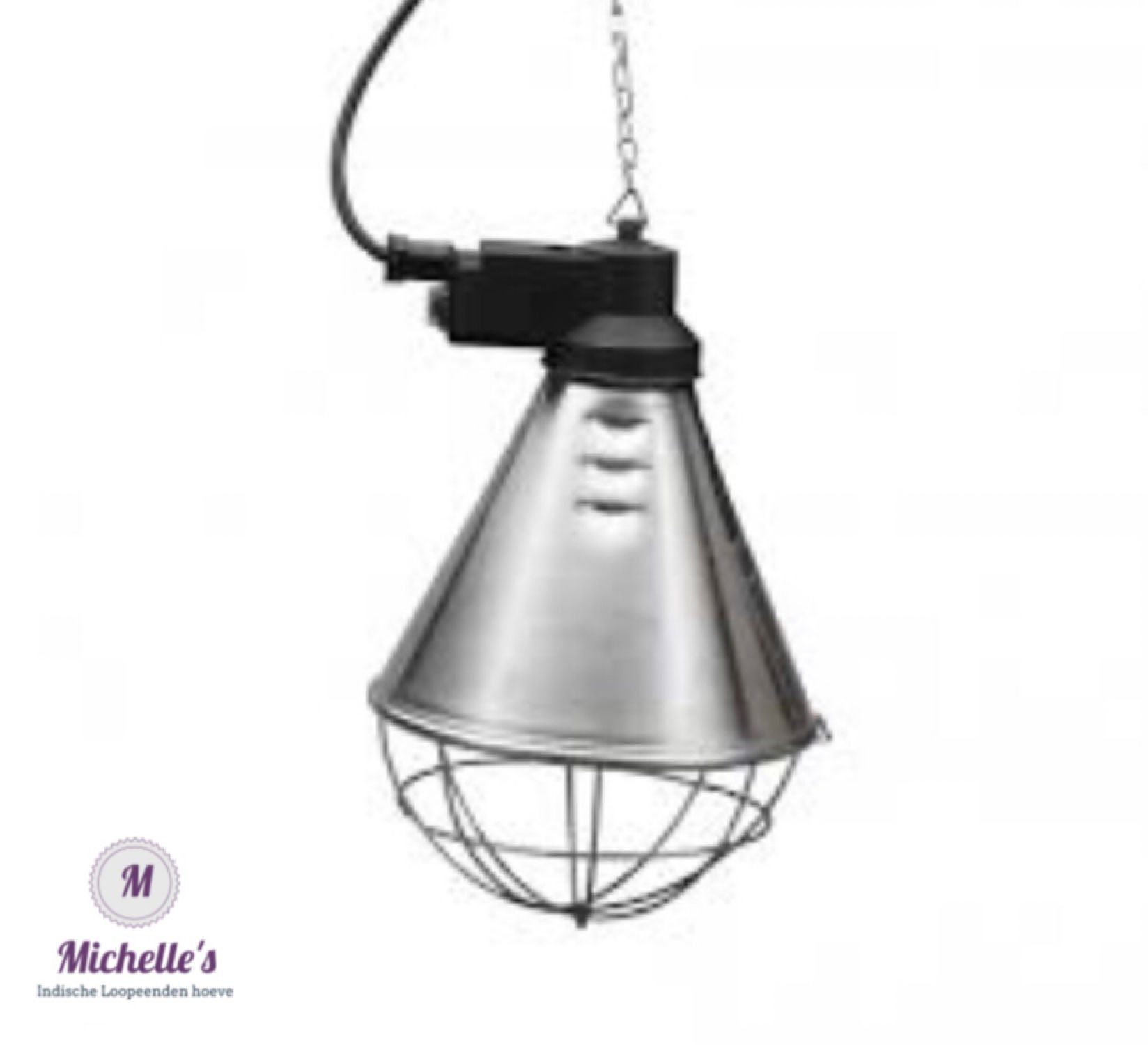 Een warmtelamp is uiterst belangrijk om jonge Indische loopeendjes mee warm te houden. Omdat Indische loopeenden vrij snel al rechtop staan kunnen ze zich branden aan een warmteplaat omdat je deze niet naar je eigen hoogte kan afstellen! Daarom verkoop ik alleen een warmtelamp in plaats van een warmteplaat.